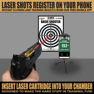 Our G-Sight Dry Fire Training System uses a laser cartridge that matches your firearm’s caliber. Insert the cartridge into your chamber, and when you pull the trigger, the firing pin hits a rubber strike pad, causing a quick laser burst discharge. This burst "hits" our SMART TARGET, where our FREE SFL Mobile App (available on Android and iOS) captures the laser strike with your phone’s camera, identifying the exact point of impact.